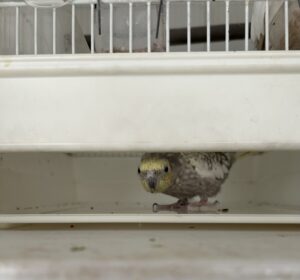 前日夜敷紙交換する際は床からひょっこり可愛い顔を覗かせていたので、